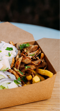Äkta grekisk street food direkt från vår foodtruck – saftig gyros, grillad halloumi, krispiga pommes och krämig tzatziki.